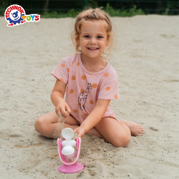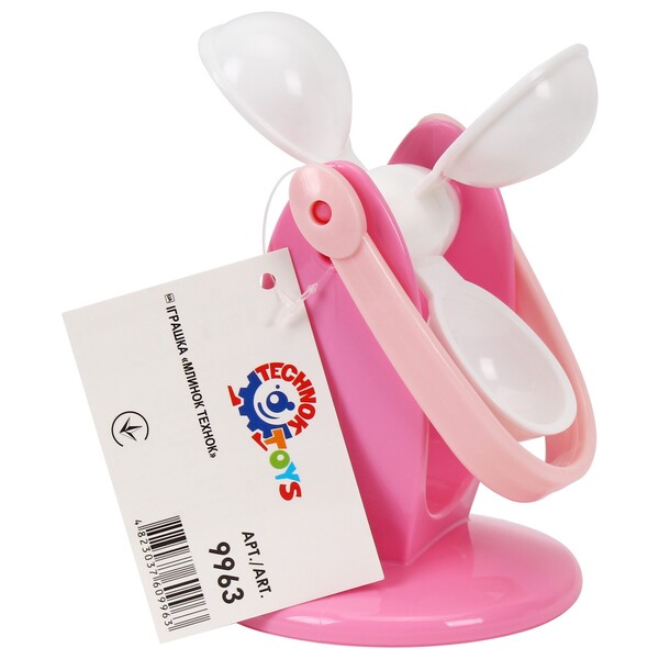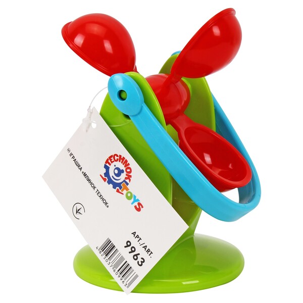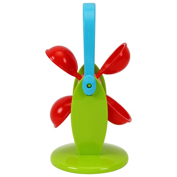 Διαθέτει σταθερή βάση, μαλακή λαβή και, το πιο σημαντικό – οι φτερωτές του νερόμυλου περιστρέφονται! Οι φτερωτές αρχίζουν να κινούνται όταν ρίχνετε νερό πάνω τους ή απλώς φυσάτε. Αυτή η διαδικασία εγγυάται έκπληκτα βλέμματα από τα παιδιά και χαρούμενες, απολαυστικές στιγμές παιχνιδιού.